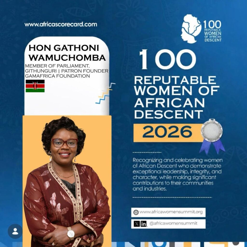 Githunguri Member of Parliament Gathoni Wamuchomba continues to distinguish herself as a leader of many firsts, earning both national and global recognition for her bold, people-centered leadership.